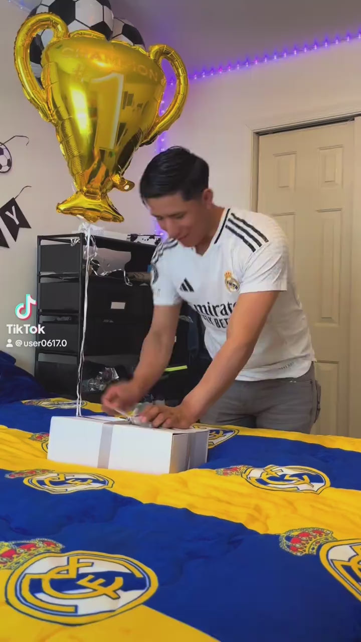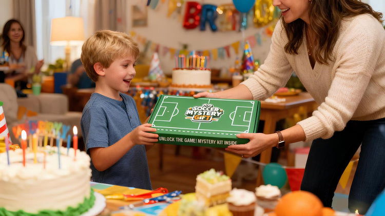 A mystery box contains a surprise selection of football-themed items.